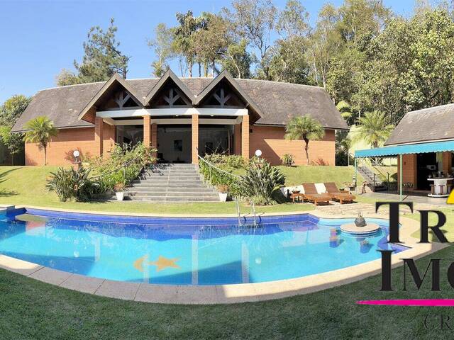 A divisão que privilegia o contato com a natureza exuberante é um dos itens que encanta, hall de entrada, salas de estar, escritório, lareira, lavabos, jardim, com lago de carpas serpenteando o acesso, deixa tudo mais claro, com iluminação natural, por conta de grandes panos e portas de vidro. A cozinha com ilha, e totalmente planejada com sala de almoço, point para o café, lavanderia anexa, 2 dormitórios e banheiro de serviço, com saída estratégica. No piso superior, a ala íntima, com family room, roupeiros e escritório, contempla 4 suítes, sendo 2 com hidro e a master além da hidro com closet.